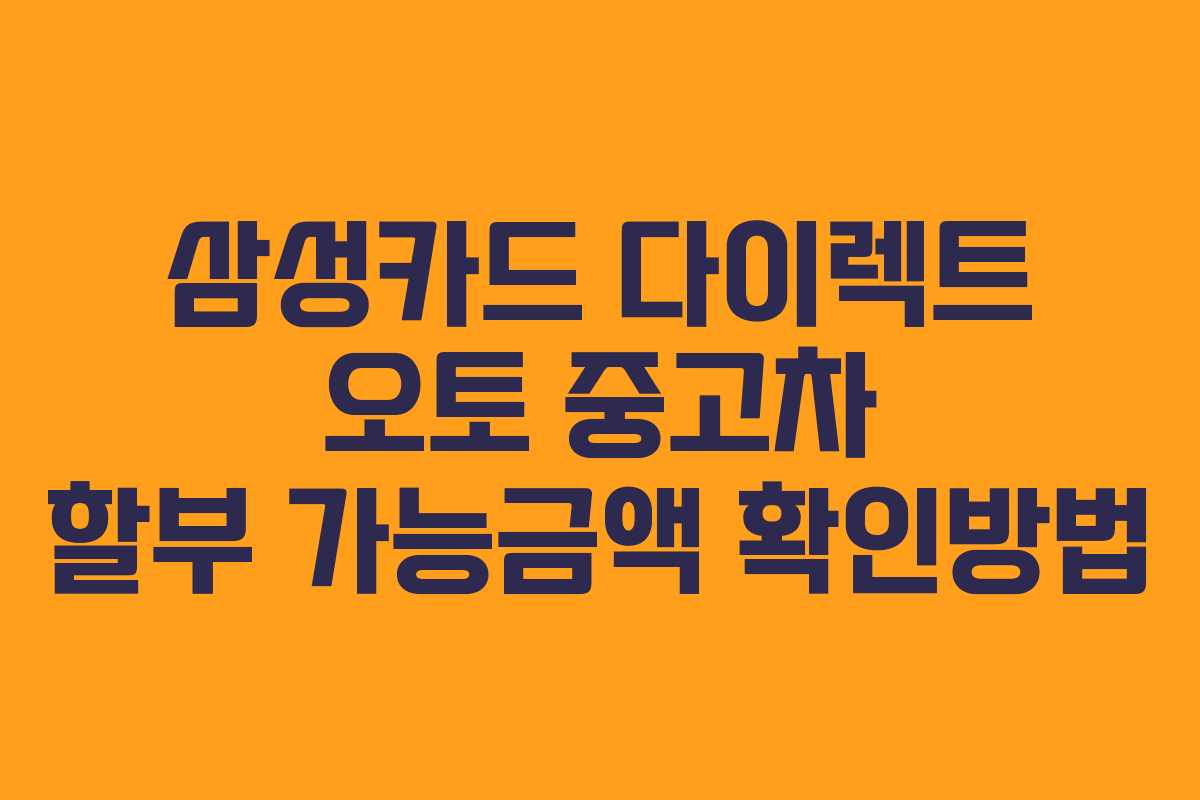 중고차 구매 전에 할부 가능 금액을 확인하려면 삼성카드 다이렉트 오토 공식 웹사이트를 방문하면 됩니다. 여기에서 확인하세요.