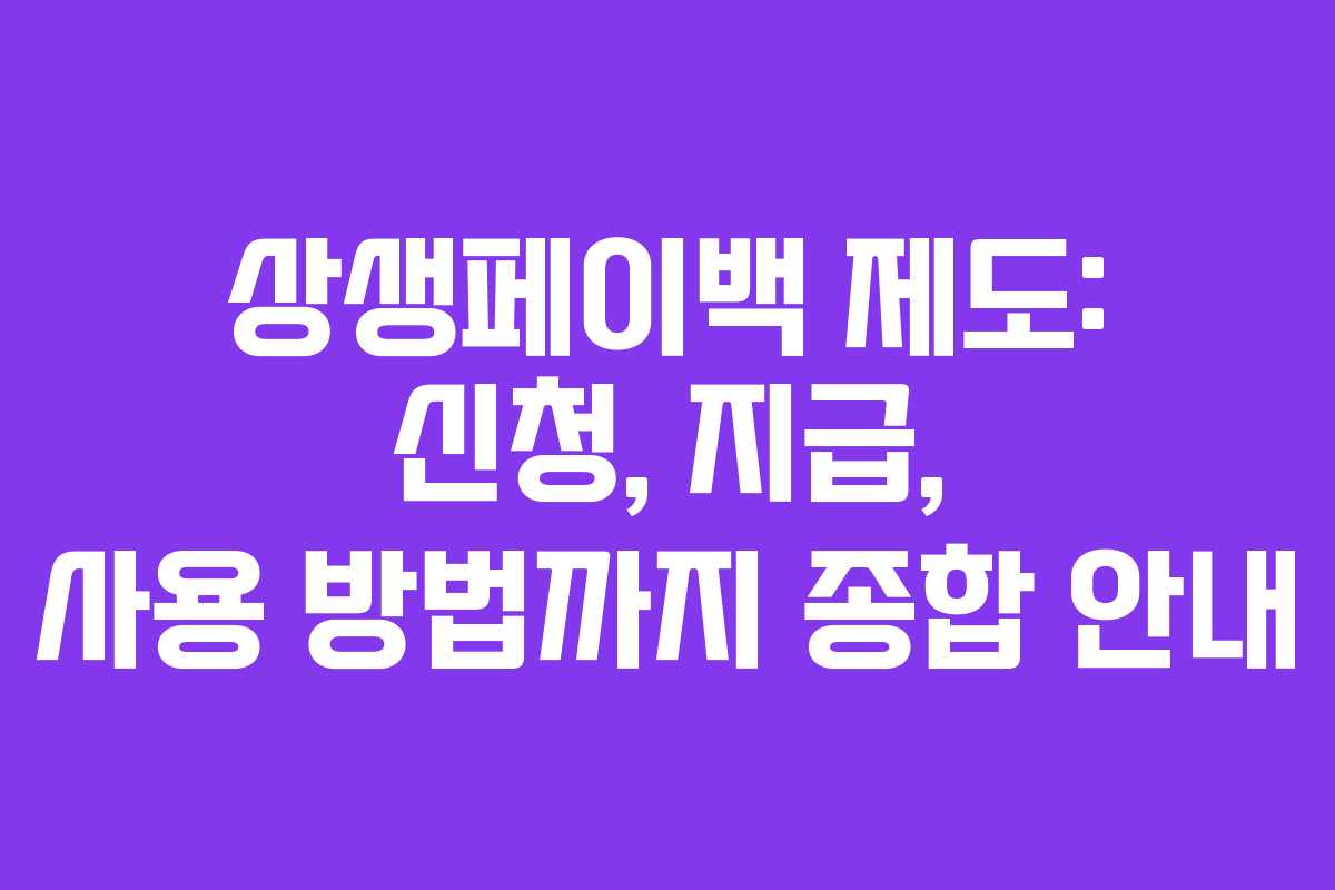 상생페이백 제도는 정부가 소상공인 지원과 소비 촉진을 동시에 도모하기 위해 도입한 프로그램입니다. 이번 글에서는 상생페이백의 개요부터 신청 방법, 지급 일정, 사용처까지 자세히 알아보겠습니다.