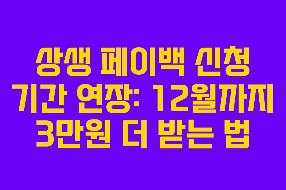 상생 페이백 신청이 12월 31일까지 연장되었습니다. 12월 사용분 최대 3만 원 환급 기회를 놓치지 마시고, 지금 바로 신청하세요!