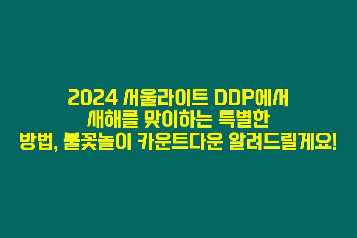 2024년 새해를 맞이하며 서울 DDP에서 펼쳐지는 특별한 불꽃놀이와 카운트다운을 놓치지 마세요! 아래를 읽어보시면 사전 예약 방법과 꿀팁, 그리고 이벤트의 모든 하이라이트를 확인할 수 있습니다. 새해를 DDP에서 환상적인 기억으로 채워보세요!