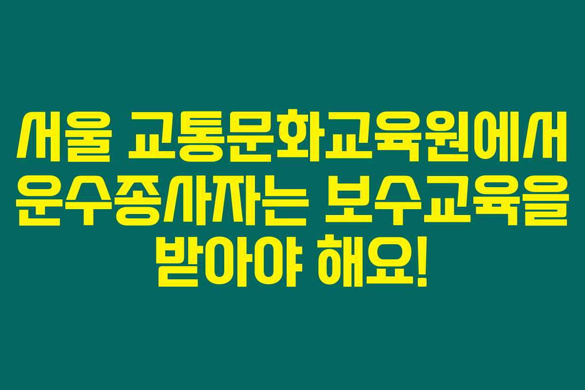 서울에서 운수종사자로 일하려면 보수교육이 필수라는 사실, 알고 계셨나요? 운수종사자 여러분이 꼭 알아야 할 보수교육에 대한 정보를 공유할게요. 아래를 읽어보시면 교육 기간과 신청 방법까지 다 살펴볼 수 있어요.