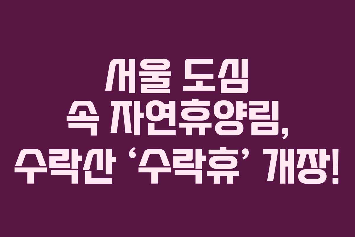 서울 도심에서 자연을 만끽할 수 있는 새로운 공간, ‘수락휴’가 2025년 7월 17일에 정식으로 개장합니다. 복잡한 도시 생활 속에서 힐링과 자연 치유를 원하는 이들에게 최적의 장소가 될 것입니다. 특히 4호선 불암산역에서 2km 거리에 위치하고 있어 접근성도 뛰어납니다.