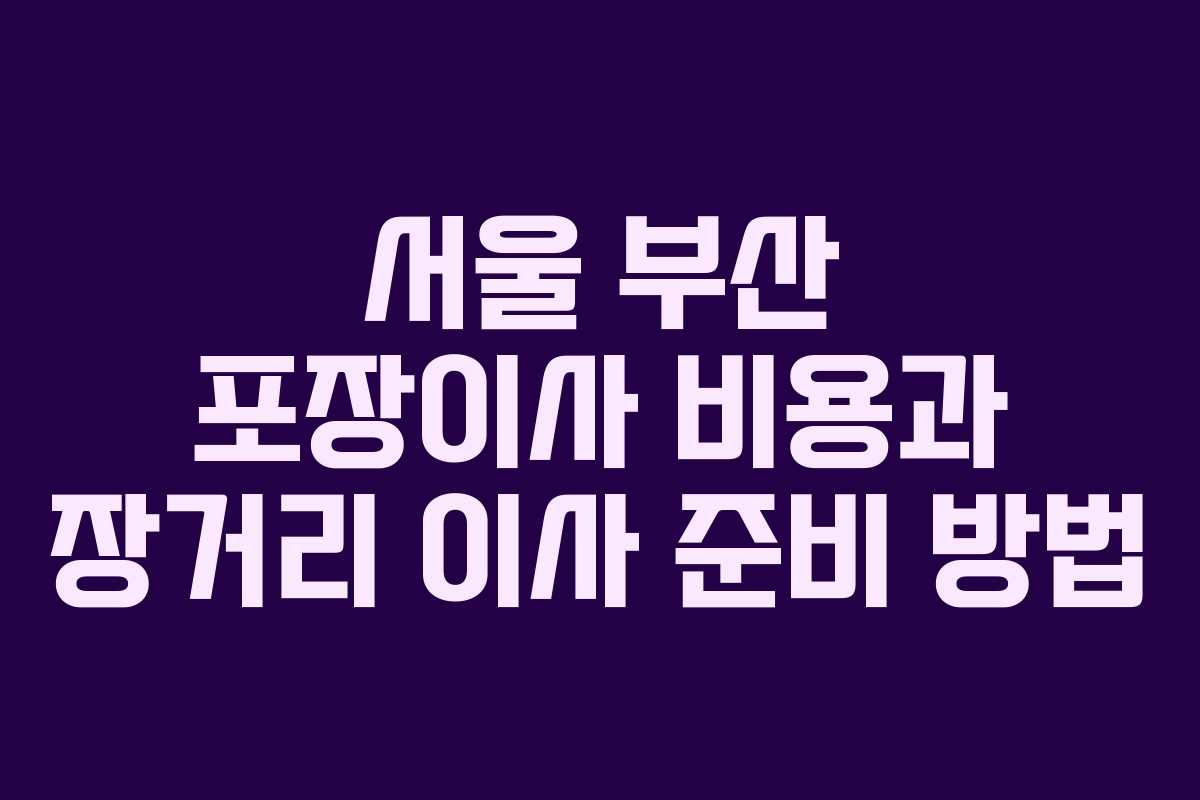 서울과 부산 간의 포장이사 비용은 여러 요인에 따라 달라집니다. 일반적으로 예상되는 비용은 약 250만 원에서 300만 원 사이입니다. 그러나 다음과 같은 요소들이 이에 영향을 미칩니다.