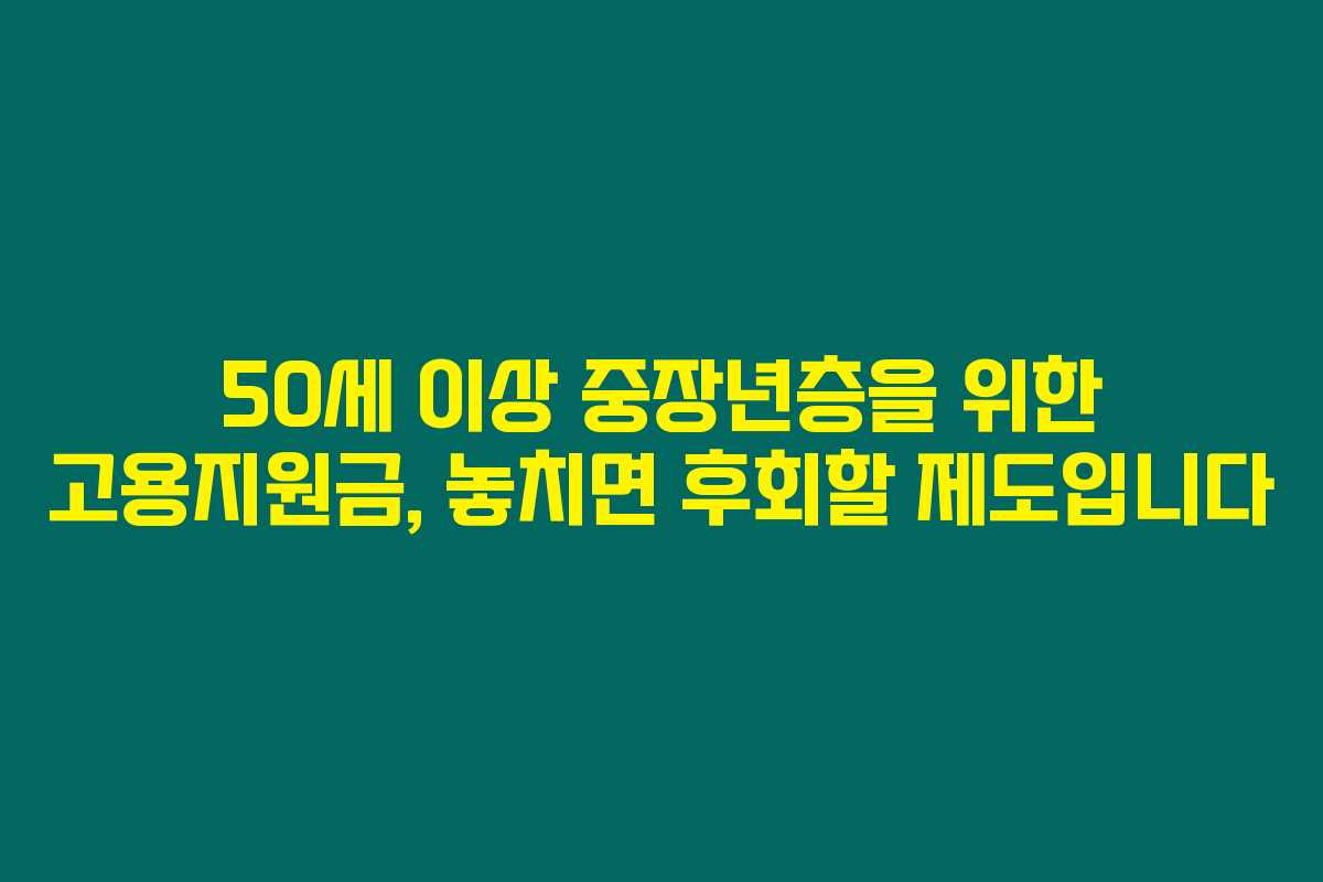 50세 이상 중장년층 여러분, 경제적으로 어려운 시기가 아닐까요? 아니면 친지나 지인 중 이런 문제를 겪고 계신 분이 계시나요? 50세 이상 중장년층을 위한 고용지원금에 대해 알아보면, 많은 도움이 될 수 있을 거예요. 아래를 읽어보시면 정말 다양한 지원금 제도와 프로그램이 준비되어 있어서 경력 위기를 겪고 있는 중장년층에게 필수적인 정보가 될 거예요.
