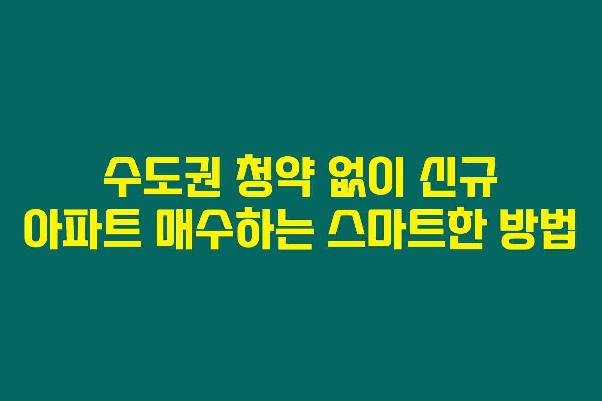 수도권에서 신규 아파트를 매수하고 싶은데 청약은 복잡하고 힘들게 느껴지시나요? 많은 사람들이 청약을 놓쳐서 아쉽다고 이야기해요. 오늘 소개할 방법들을 아래를 읽어보시면, 청약 없이도 새 아파트를 손쉽게 매수할 수 있는 스마트한 전략임을 확인할 수 있을 거랍니다.