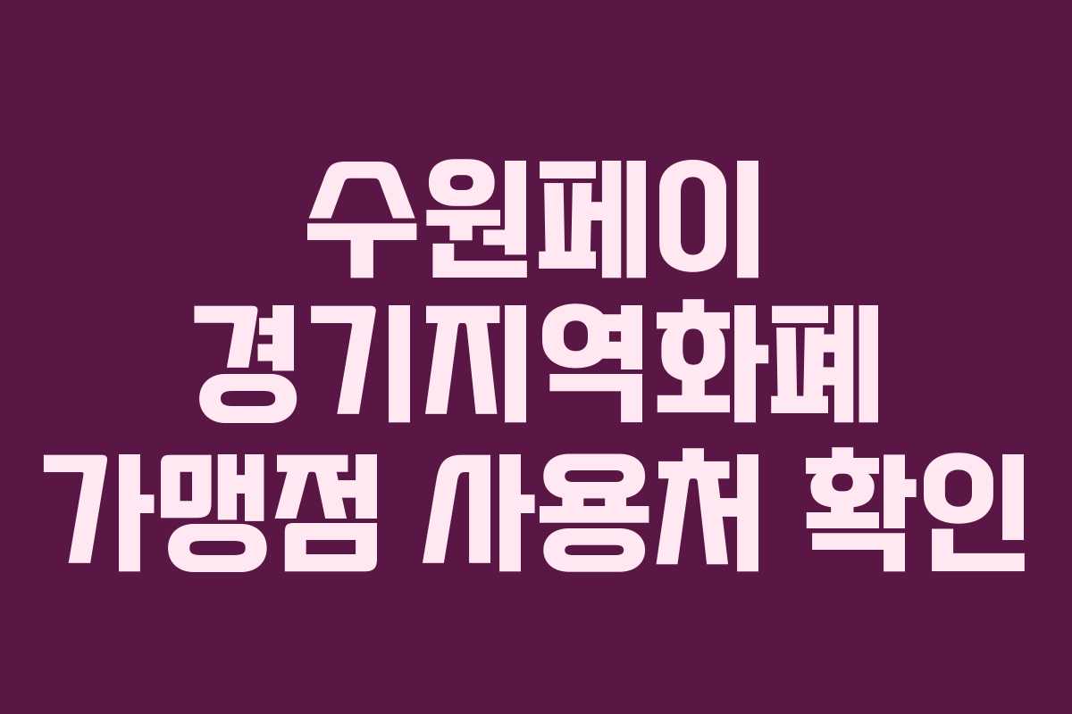 수원페이는 경기도 수원시에서 운영하는 지역화폐로, 지역 경제를 활성화하고 소상공인을 지원하기 위해 만들어졌습니다. 오늘은 수원페이를 사용할 수 있는 가맹점과 그 확인 방법에 대해 알아보겠습니다.