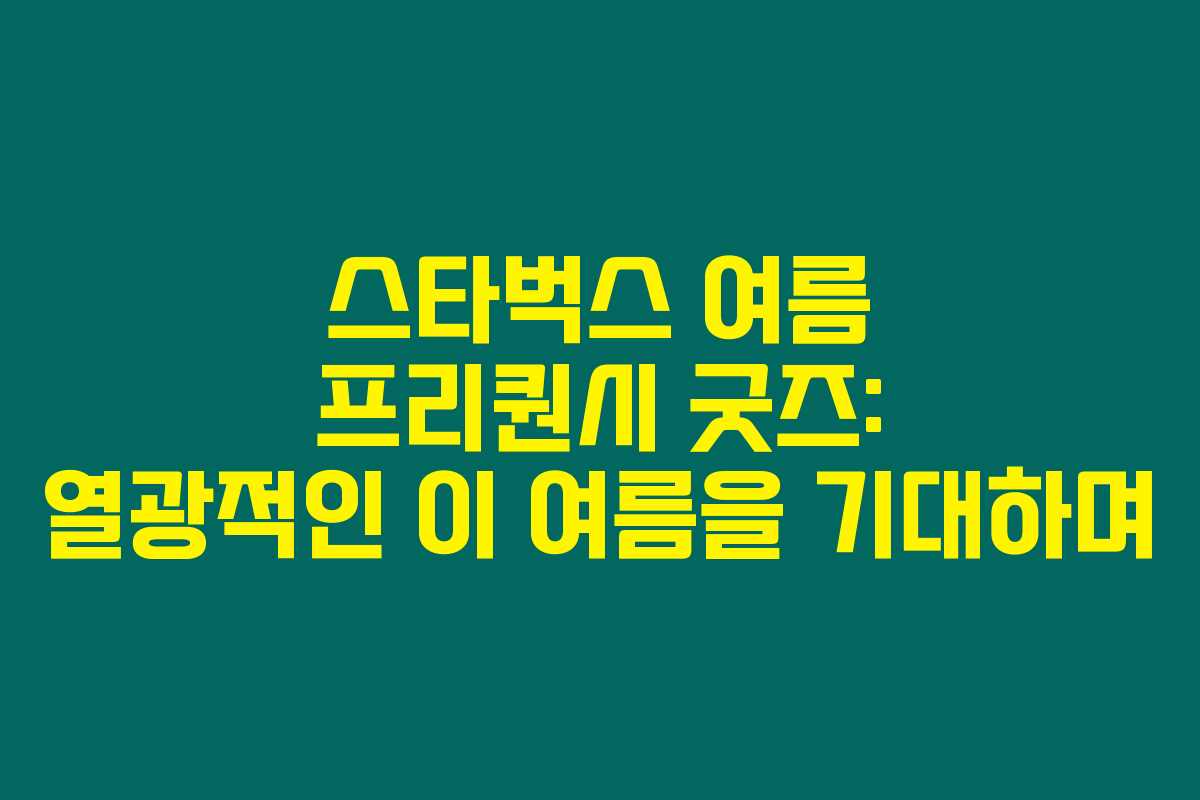 스타벅스 여름 프리퀀시 굿즈: 열광적인 이 여름을 기대하며