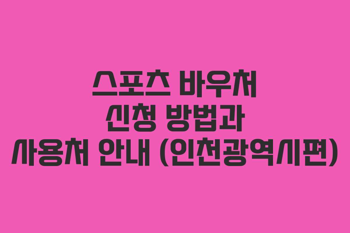 스포츠 바우처는 체육 활동과 관련된 다양한 비용을 지원하는 프로그램으로, 특히 어린이와 청소년을 대상으로 하는 스포츠 클럽 활동, 국민체력증진 프로그램 등에서 활용됩니다. 인천광역시에서 스포츠 바우처를 신청하고 사용할 수 있는 방법에 대해 자세히 알아보겠습니다.
