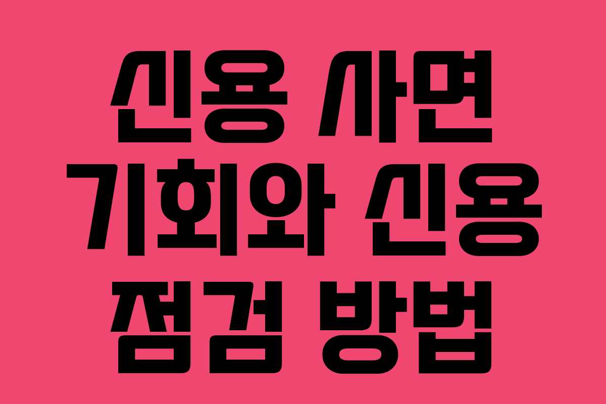 신용 점검을 통해 자신의 신용 상태를 미리 파악하고, 신용 사면 기회를 놓치지 않도록 하세요.