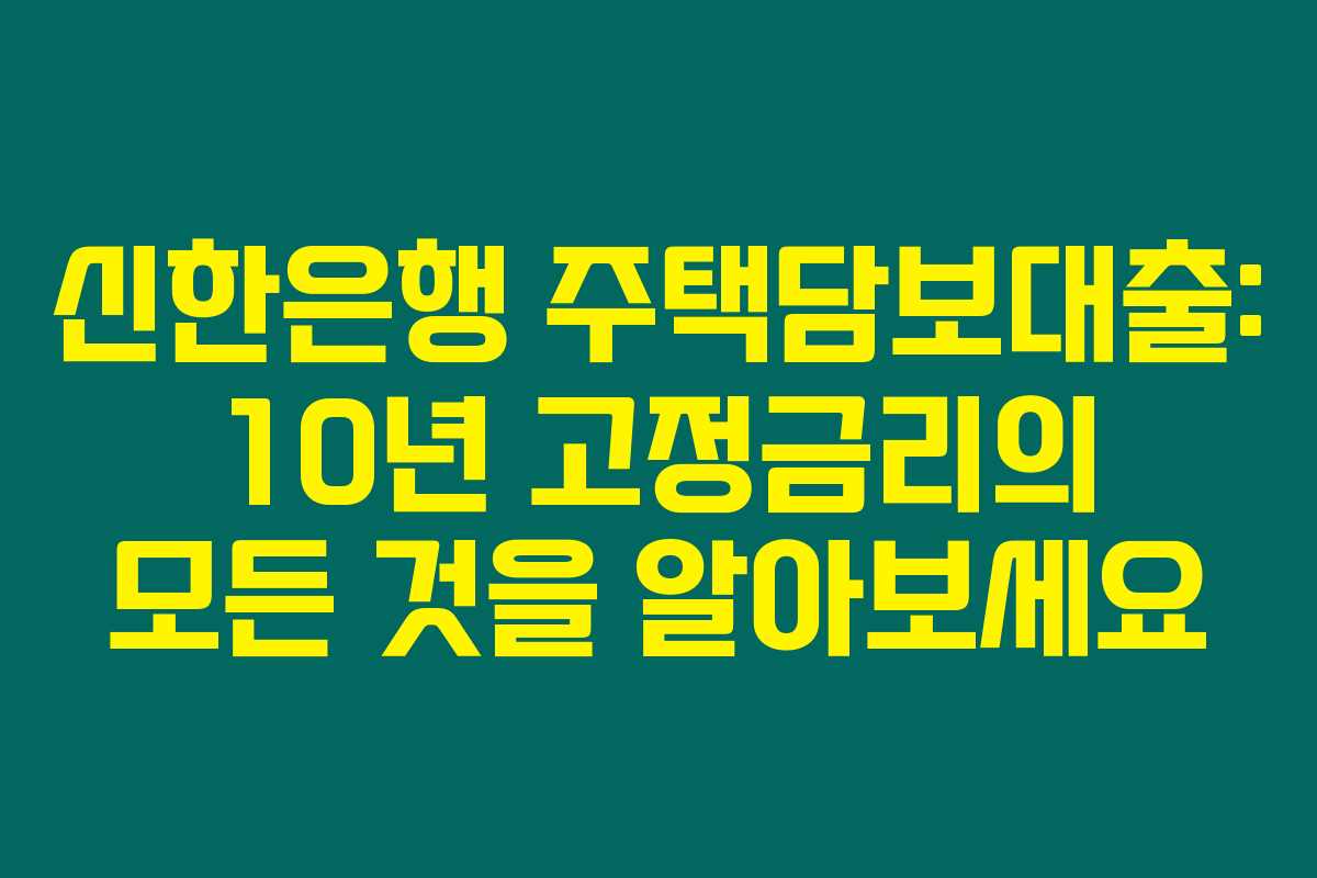 신한은행 주택담보대출: 10년 고정금리의 모든 것을 알아보세요
