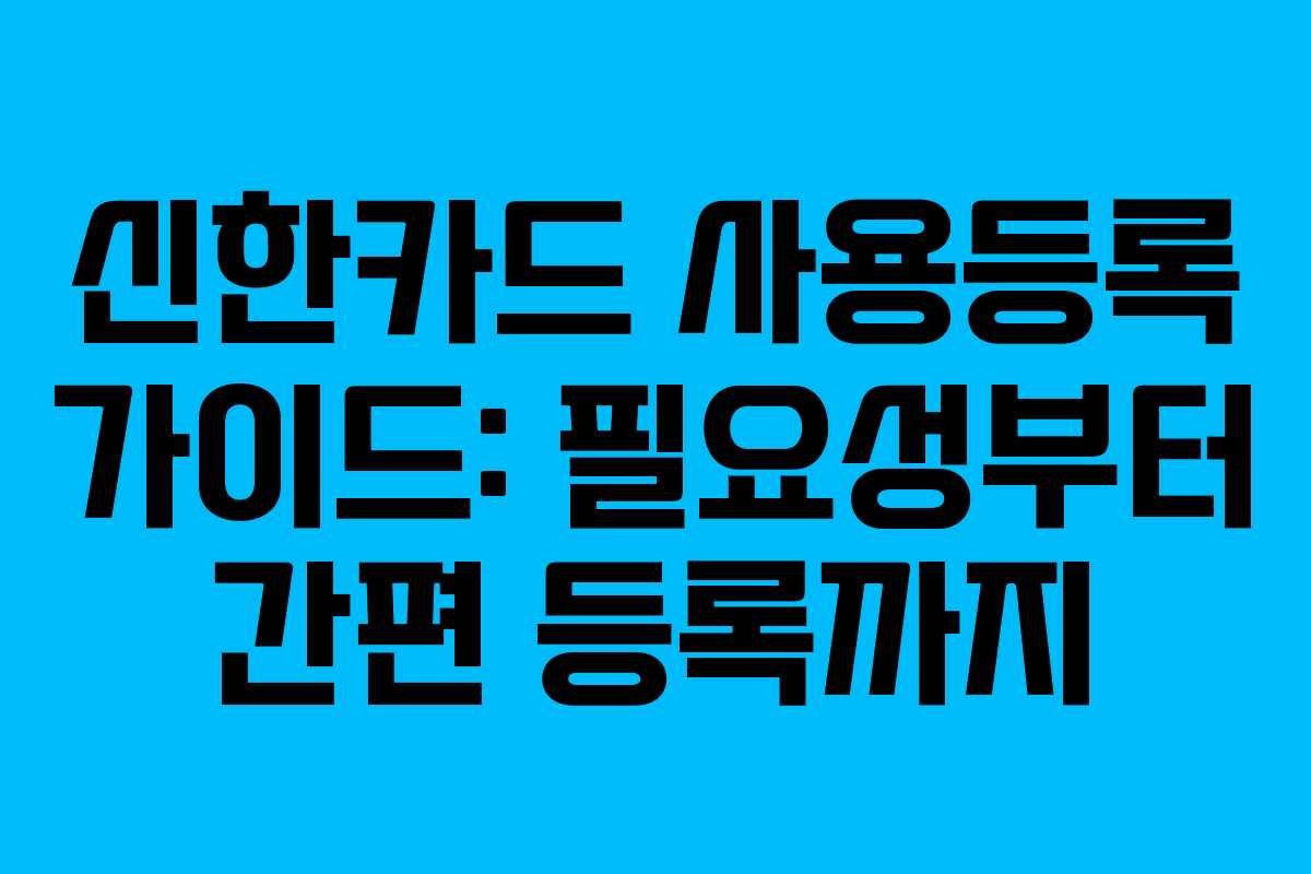 신한카드 사용등록 가이드: 필요성부터 간편 등록까지