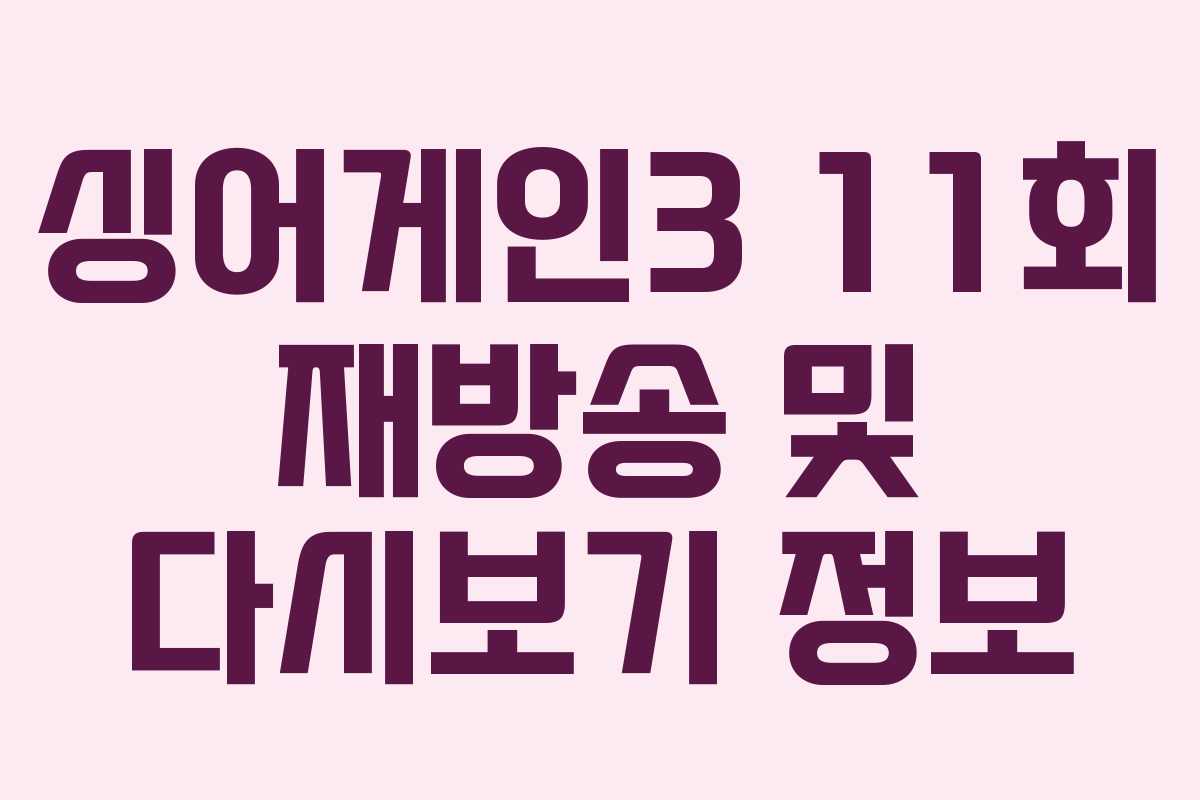 2024년 1월 4일 방송된 싱어게인3 11회의 재방송 및 다시보기 정보를 안내드립니다. 이번 회차는 4라운드 1차 경연이 펼쳐지는 중요한 방송이었습니다.
