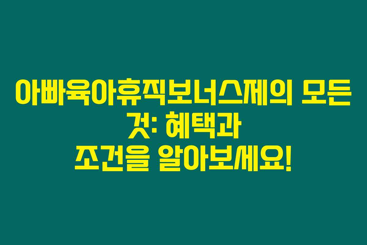 아빠육아휴직보너스제를 신청하기 위해서는 몇 가지 조건을 알아두셔야 해요.