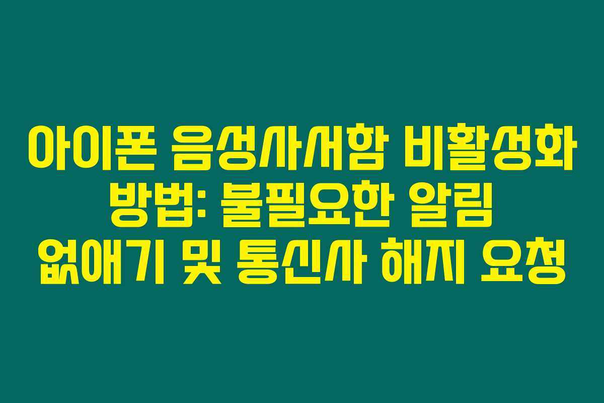 아이폰의 음성사서함 기능은 기본적으로 통신사 내의 서비스에 의해 작동해요. 따라서 아이폰 내부 설정으로는 완전히 비활성화할 수 없고, 통신사의 설정이 필요할 때가 많답니다.