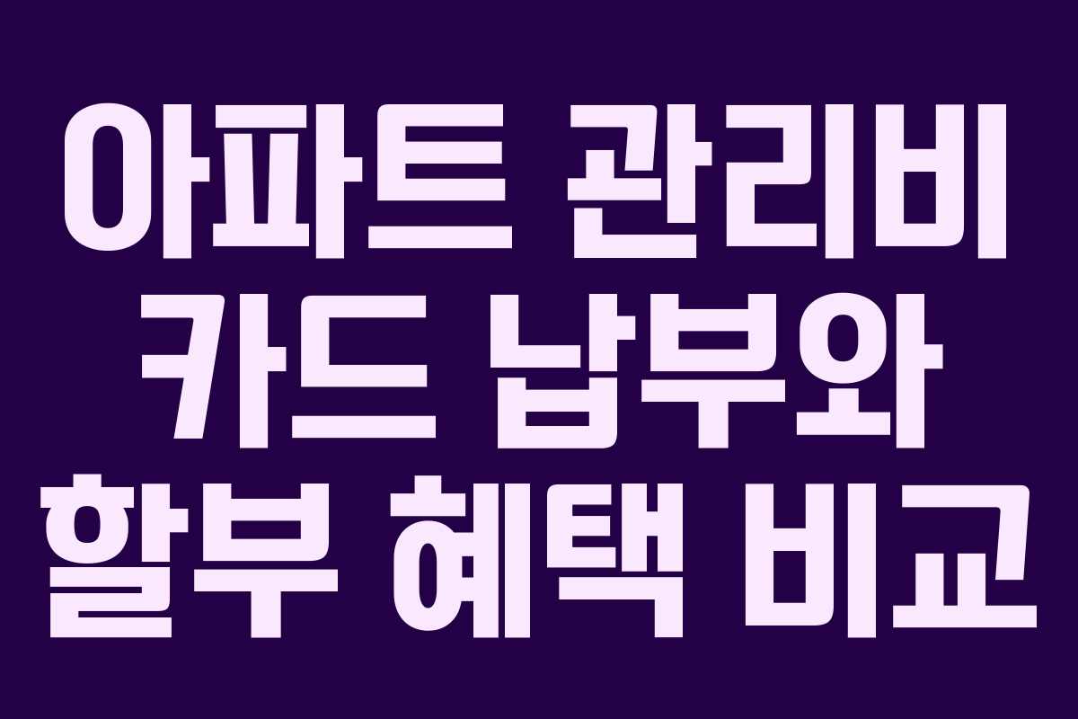 아파트 관리비를 납부할 때, 카드사별 혜택을 비교하여 자신에게 적합한 카드를 선택하는 것이 중요합니다.