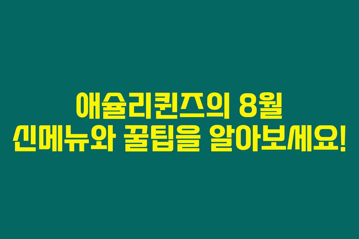 뜨거운 여름을 시원하게 날려줄 애슐리퀸즈의 8월 신메뉴가 여러분을 기다리고 있어요. 여름철 더위에 지친 여러분을 위해 준비된 특별한 메뉴와 다양한 혜택을 놓치지 마세요. 애슐리퀸즈의 새로운 터치의 맛과 꿀팁을 살펴보실까요?