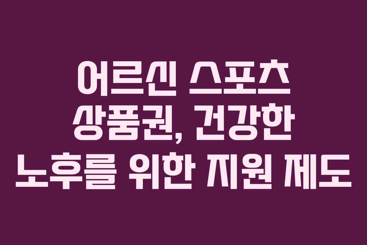 어르신 스포츠 상품권은 만 65세 이상 기초연금 수급자를 위해 스포츠 시설 이용을 지원하는 제도입니다.