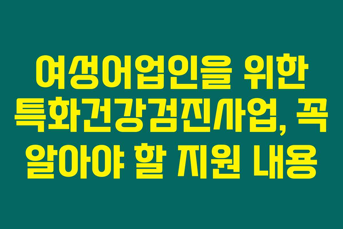 여성어업인을 위한 특화건강검진사업은 해양수산부에서 주관하며, 이 사업은 여성어업인들이 겪는 직업질환을 예방하고 건강을 챙길 수 있도록 도와주는 중요한 프로그램입니다. 제가 직접 리서치해본 결과로는, 이 사업은 여성어업인들에게 필요한 맞춤형 건강검진을 제공하여 실제로 건강 개선에 도움을 줄 것으로 보입니다. 아래를 읽어보시면 이 사업의 다양한 정보를 확인할 수 있습니다.
