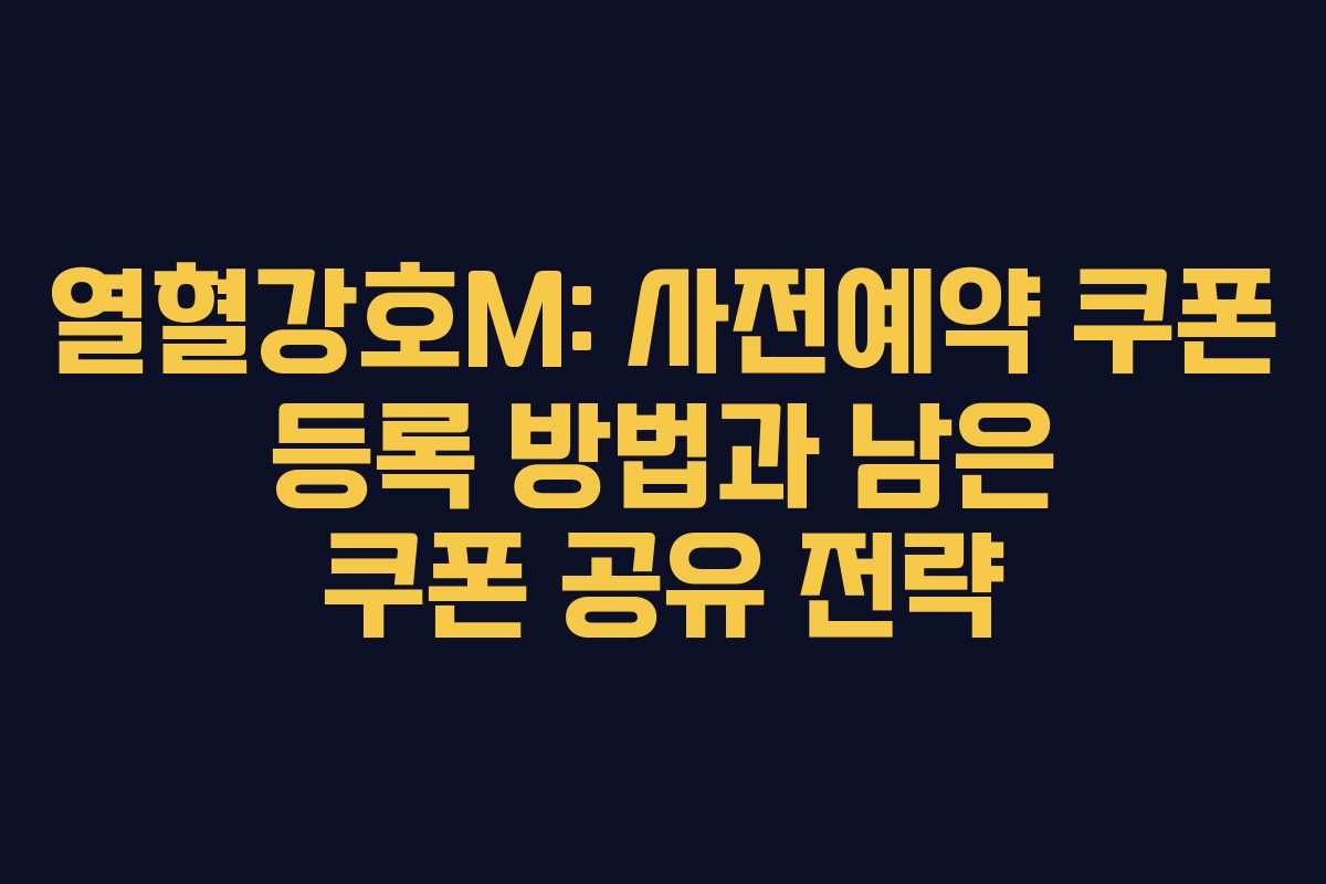 아래를 읽어보시면 열혈강호M의 사전예약 쿠폰 등록 절차와 남은 쿠폰의 전달 방법, 수령 시점 및 활용 팁까지 한눈에 확인할 수 있습니다.