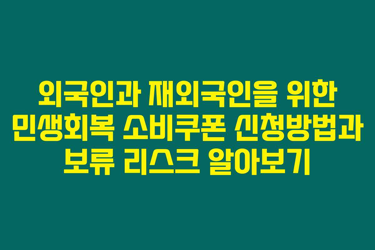 2025년 여름, 정부의 민생회복 소비쿠폰은 많은 가정에 큰 도움이 될 수 있는 기회입니다. 그런데, 이 소비쿠폰이 외국인과 재외국인에게도 해당될까요? 아래를 읽어보시면 외국인과 재외국인을 위한 신청 방법과 만약 신청을 놓친다면 발생할 수 있는 ‘지급보류’에 대한 정보까지 상세히 안내해 드립니다.