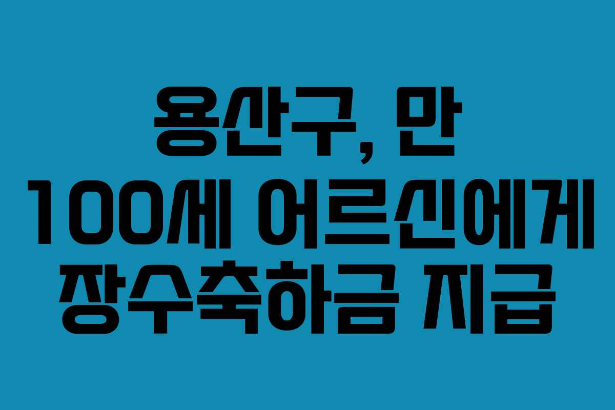 서울 용산구에서는 만 100세가 된 어르신들에게 장수축하금 100만원을 지급하기 시작했습니다. 이는 ‘서울특별시 용산구 장수축하금 지급에 관한 조례’에 따라 시행되며, 지역 내 만 100세 이상 어르신들을 대상으로 합니다.