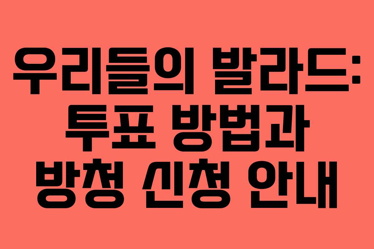 ‘우리들의 발라드’의 방청 신청은 공식 웹사이트를 통해 가능합니다. 신청 양식을 작성한 후 제출하면, 추첨을 통해 방청 기회를 부여받게 됩니다.