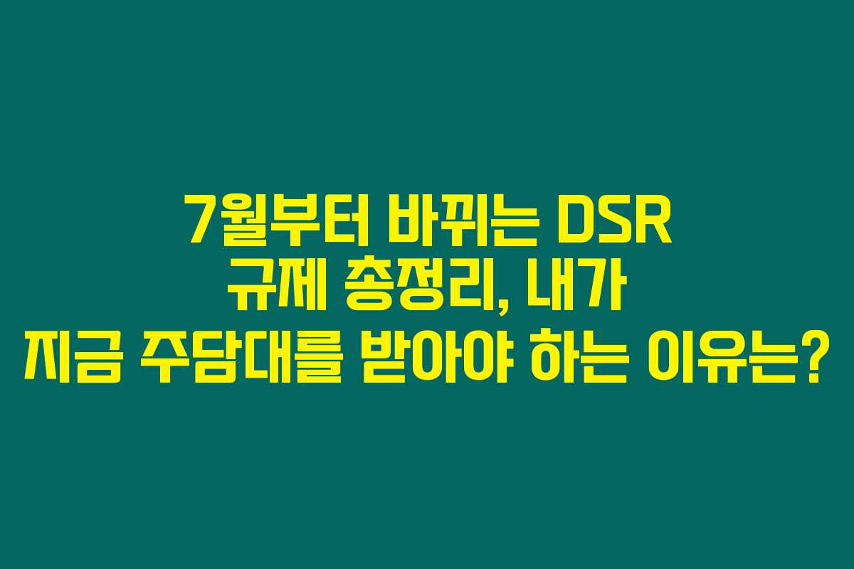 제가 직접 경험해본 결과로는, 2025년 7월부터 시행되는 DSR(총부채원리금상환비율) 규제가 대출 시장에 큰 변화를 가져올 것으로 보입니다. 이 글을 통해 DSR 규제가 무엇인지, 어떤 변화가 있는지, 또 지금 대출을 받아야 하는 이유는 무엇인지 아래를 읽어보시면 자세히 알 수 있습니다.