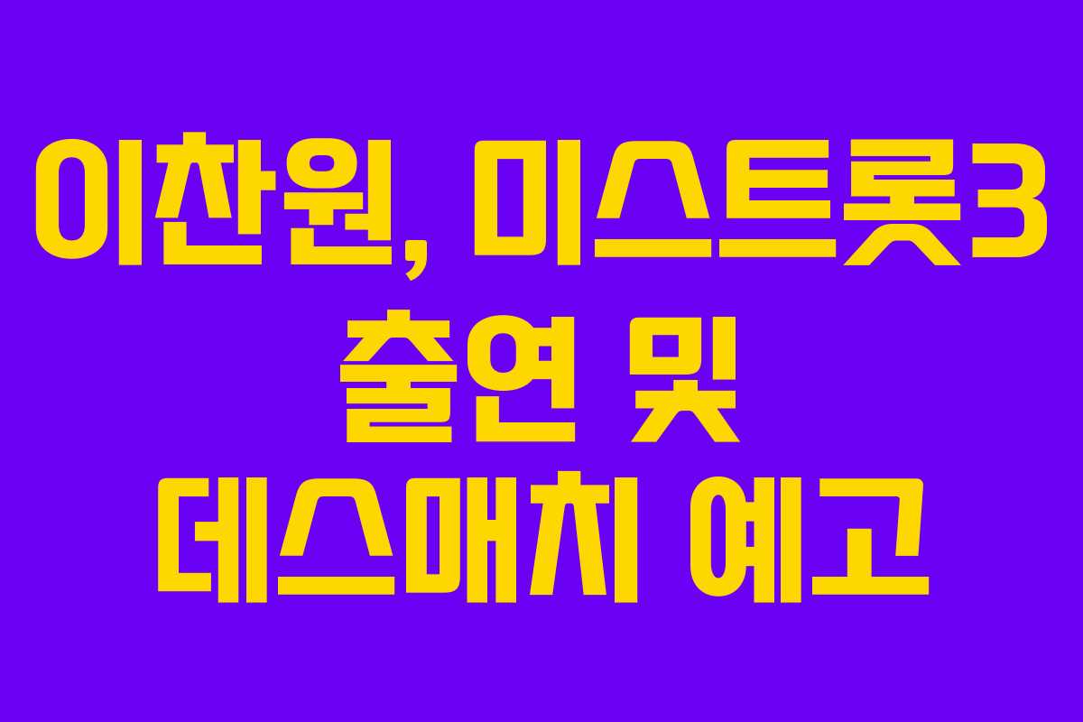 이찬원이 미스트롯3에 스페셜 마스터로 출연하면서 많은 기대를 받고 있습니다. 이번 방송에서는 2라운드 팀 미션과 3라운드 데스매치가 예정되어 있어 흥미로운 전개가 예상됩니다.