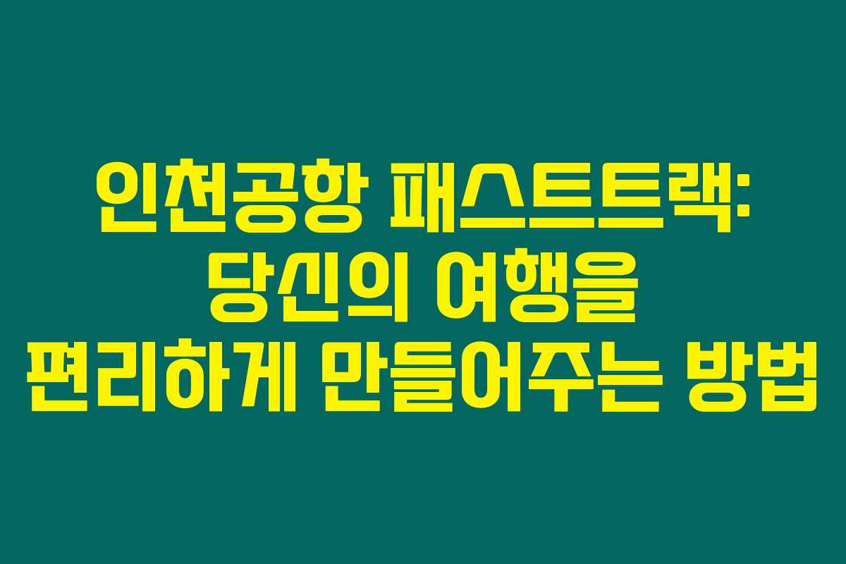 인천공항 패스트트랙: 당신의 여행을 편리하게 만들어주는 방법