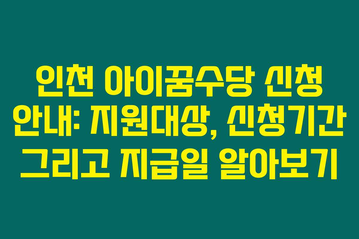 인천 아이꿈수당의 신청 및 지급일에 대한 정보입니다.