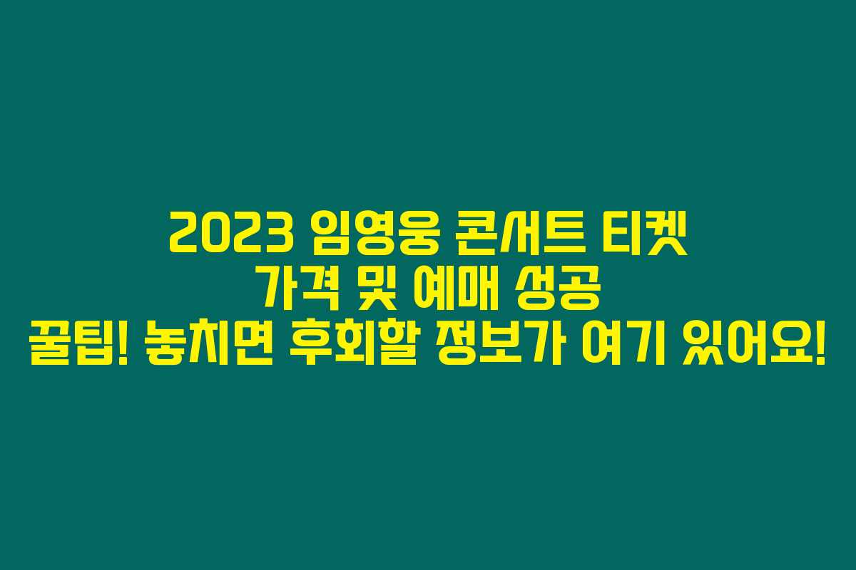 2023 임영웅 콘서트에 참여하고 싶다면 주목해주세요! 콘서트 예매의 많은 분들이 놓치지 말아야 할 중요한 정보를 소개할게요. 임영웅 팬이라면 이거 꼭 확인하셔야 해요!