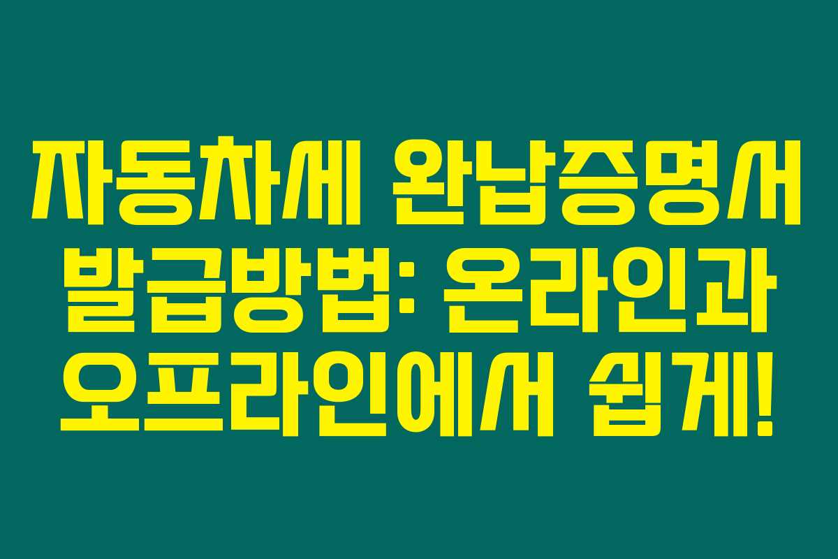 자동차세 완납증명서는 차량 관련 업무에서 필요한 소중한 문서입니다. 온라인과 오프라인에서의 발급 방법을 잘 숙지하셔서 필요할 때마다 편리하게 활용하시기 바랍니다.