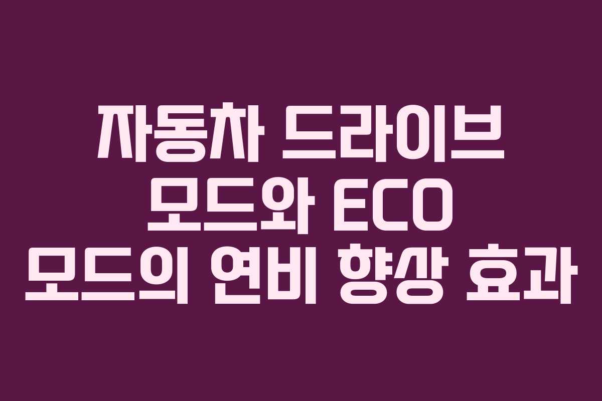 자동차 기술이 발전함에 따라 다양한 주행 모드가 제공되고 있습니다. 그 중에서도 드라이브 모드와 ECO 모드는 연비에 어떤 영향을 미치는지에 대해 알아보겠습니다.