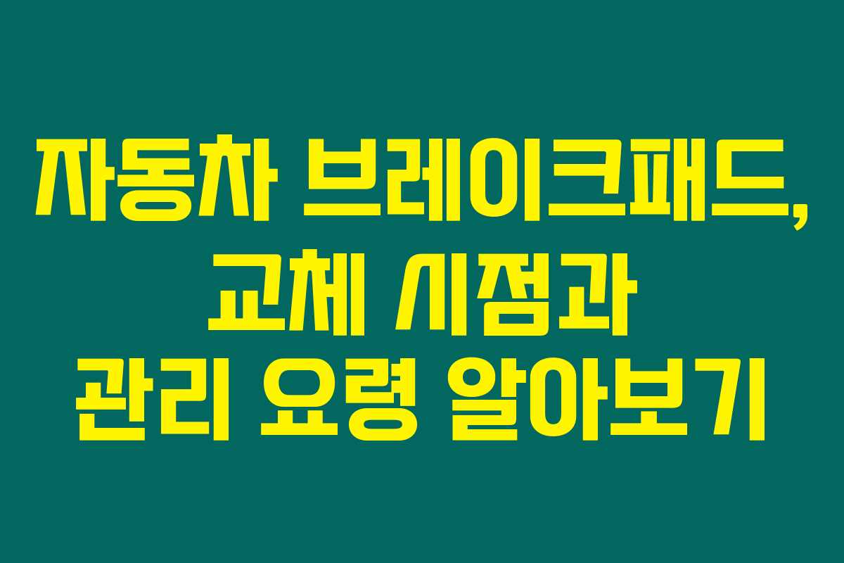 자동차 브레이크패드, 교체 시점과 관리 요령 알아보기