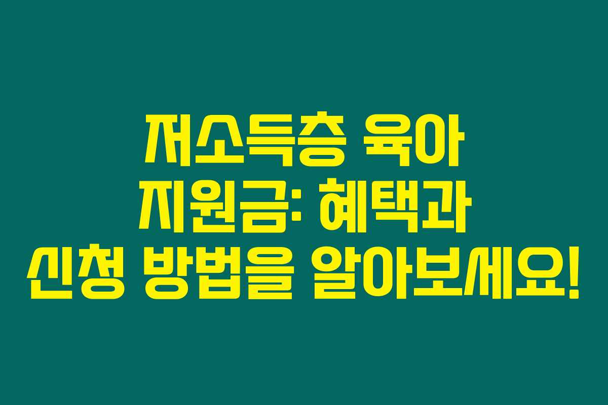 저소득층 육아 지원금: 혜택과 신청 방법을 알아보세요!