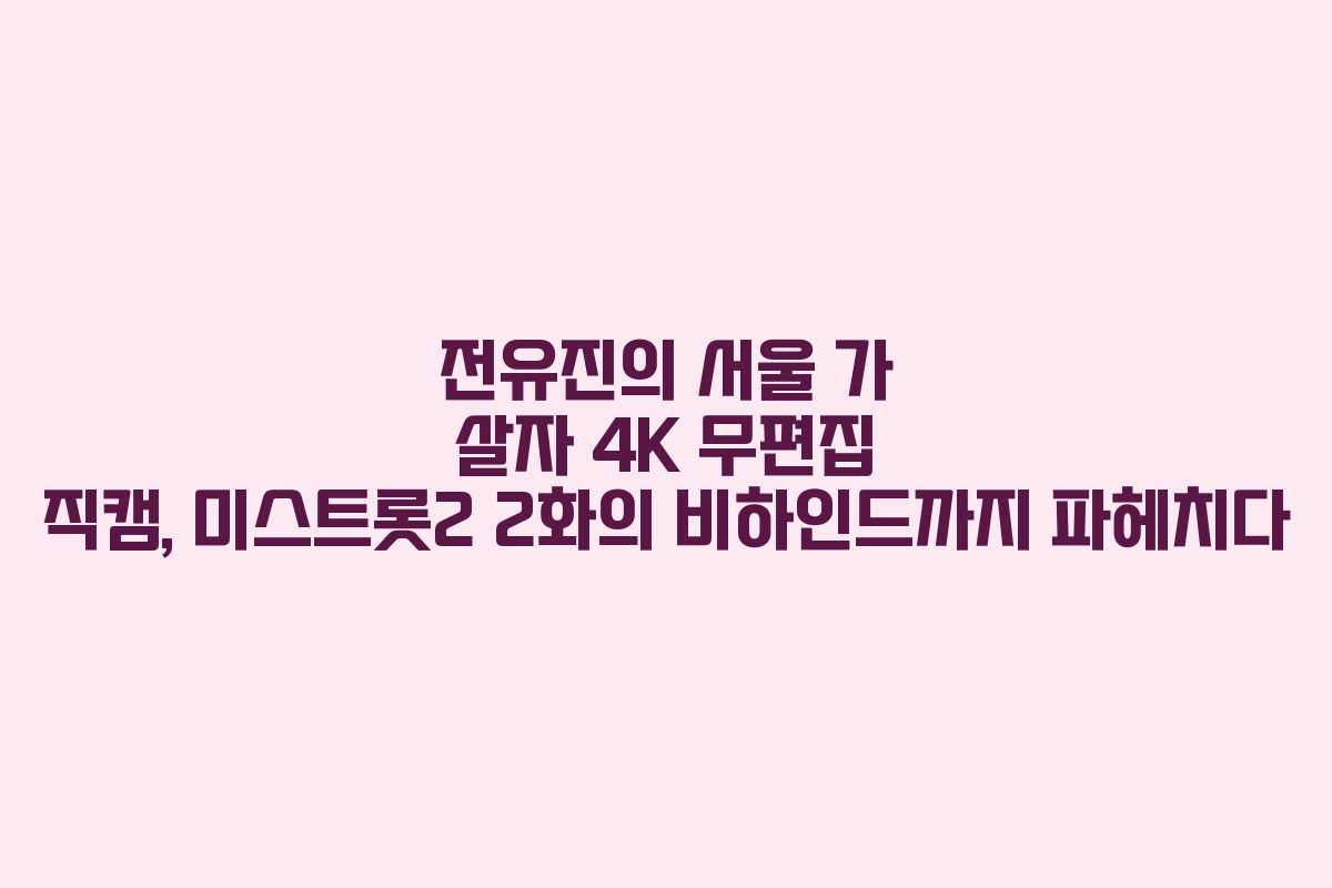 태그: 미스트롯2, 전유진, 서울 가 살자, 4K 직캠, 무편집, 유튜브 리뷰, 영상 분석, 트롯, 방송 리액션, 채널 운영, SEO
