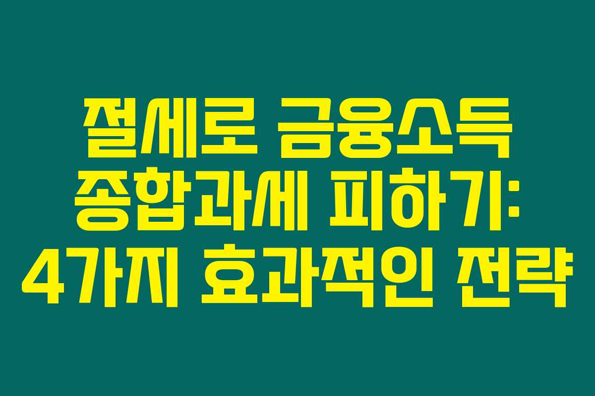 금융소득 종합과세는 재정적인 자유를 제한할 수 있는 요소이기도 하여, 효과적인 절세 전략을 통해 세금을 합리적으로 부담하는 것이 필수적이에요. 제가 직접 경험하고 리서치한 다양한 절세 전략을 활용해, 금융소득을 관리해보세요!