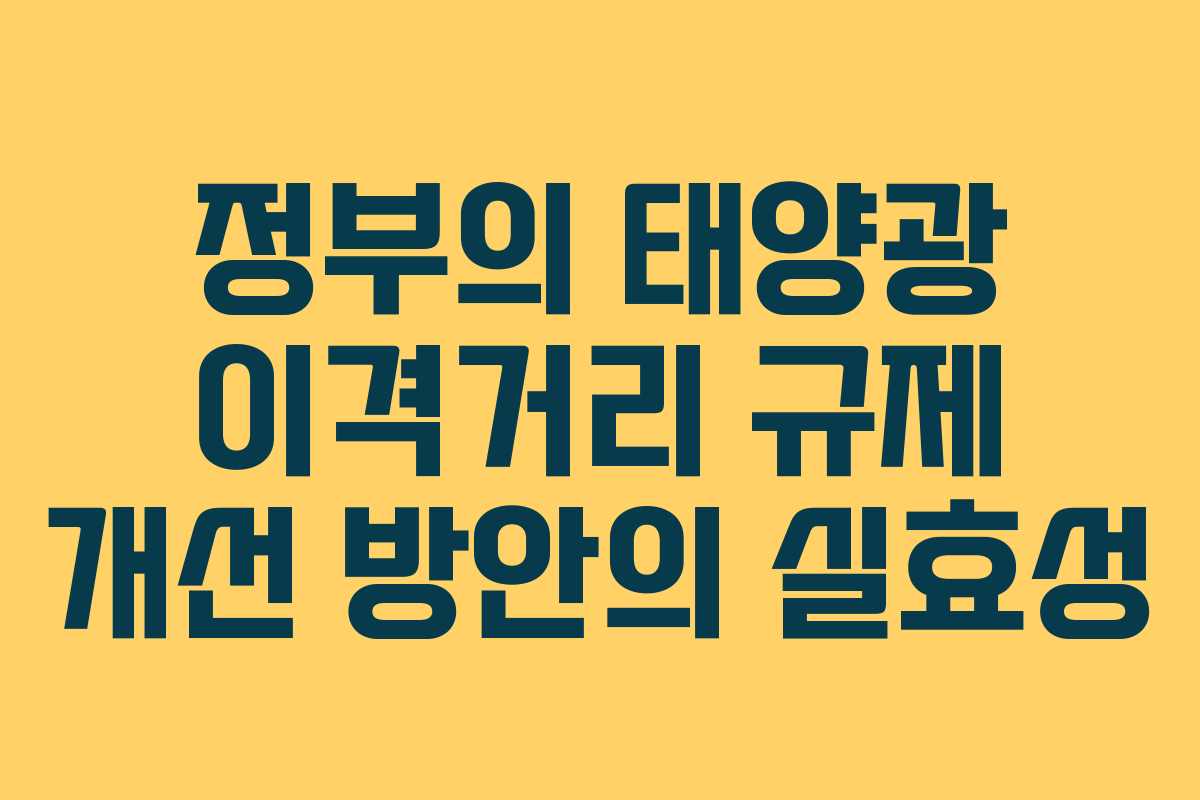 최근 정부가 발표한 태양광 이격거리 규제 개선 방안에 대한 비판이 제기되고 있습니다. 현장에서는 이 방안이 실효성이 없다는 지적이 있으며, 지방자치단체들이 적극적으로 조례 개정을 추진하지 않고 있는 상황입니다.