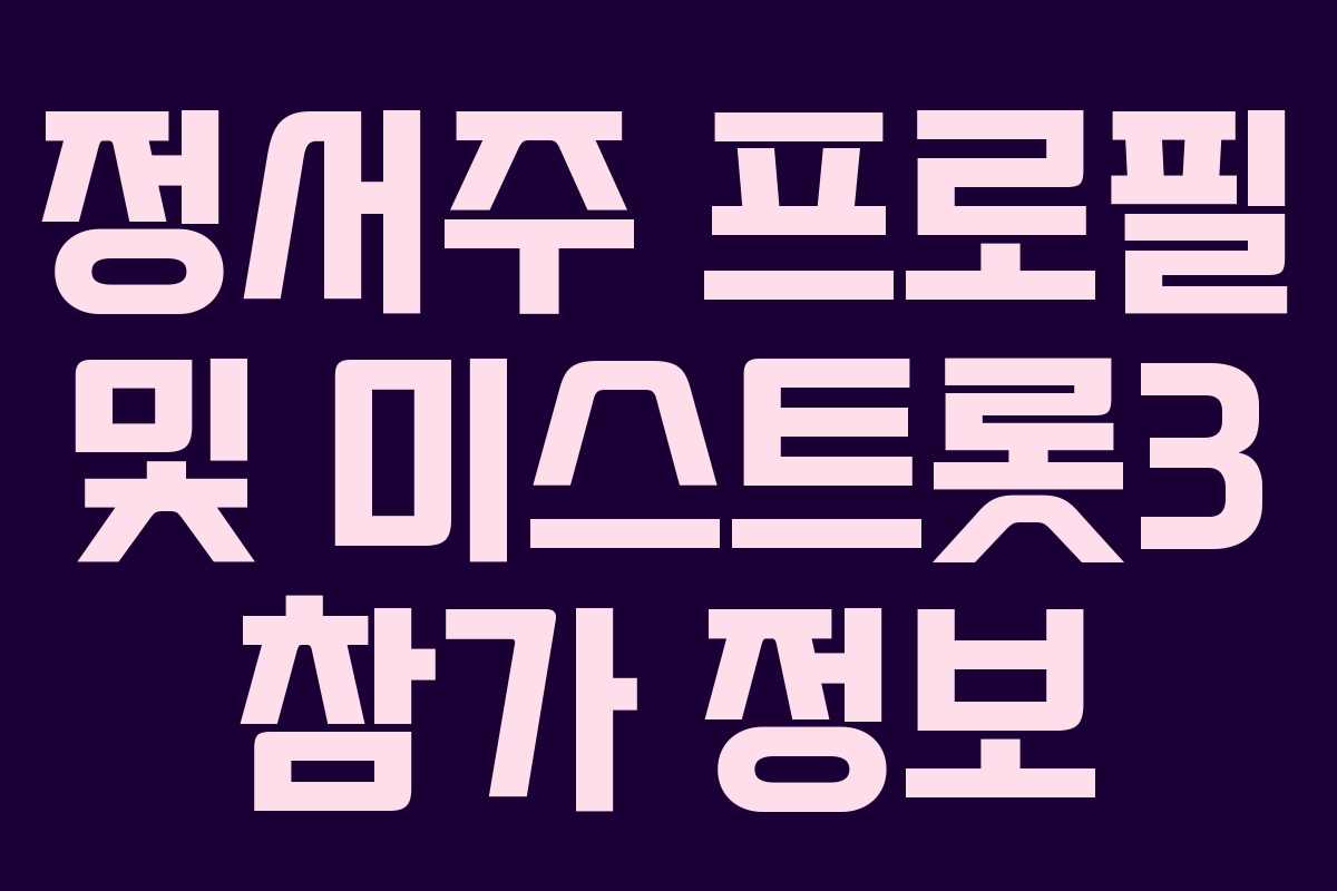 정서주는 현재 인기리에 방영 중인 미스트롯3의 참가자로, 뛰어난 실력과 매력으로 많은 사랑을 받고 있습니다. 이번 포스팅에서는 그녀의 프로필, 공식 유튜브 채널, 커버곡 및 미스트롯3에서의 활약에 대해 자세히 알아보겠습니다.