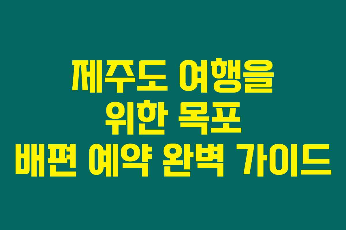 제주도 여행을 위한 목포 배편 예약 완벽 가이드