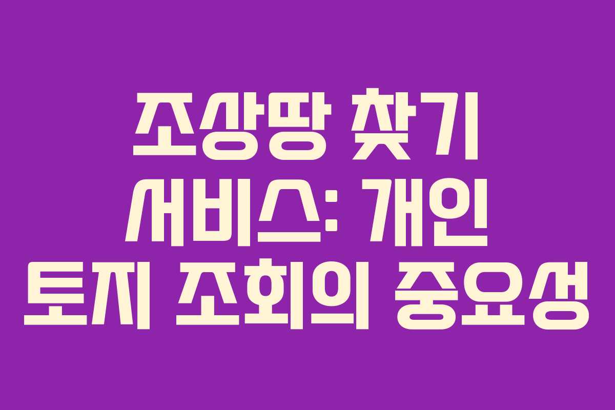 조상땅 찾기 서비스는 조상의 토지나 본인 명의의 토지를 확인해야 하는 개인과 가족에게 큰 도움이 되고 있습니다. 이 서비스는 지적전산망을 활용하여 토지 소유 현황을 파악할 수 있도록 지원합니다.