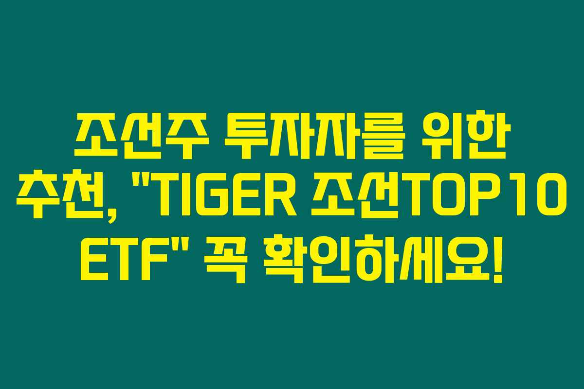 여러분도 TIGER 조선TOP10 ETF와 함께 조선업 투자에 성공하길 바라요. 매수 기회를 잡아보세요!