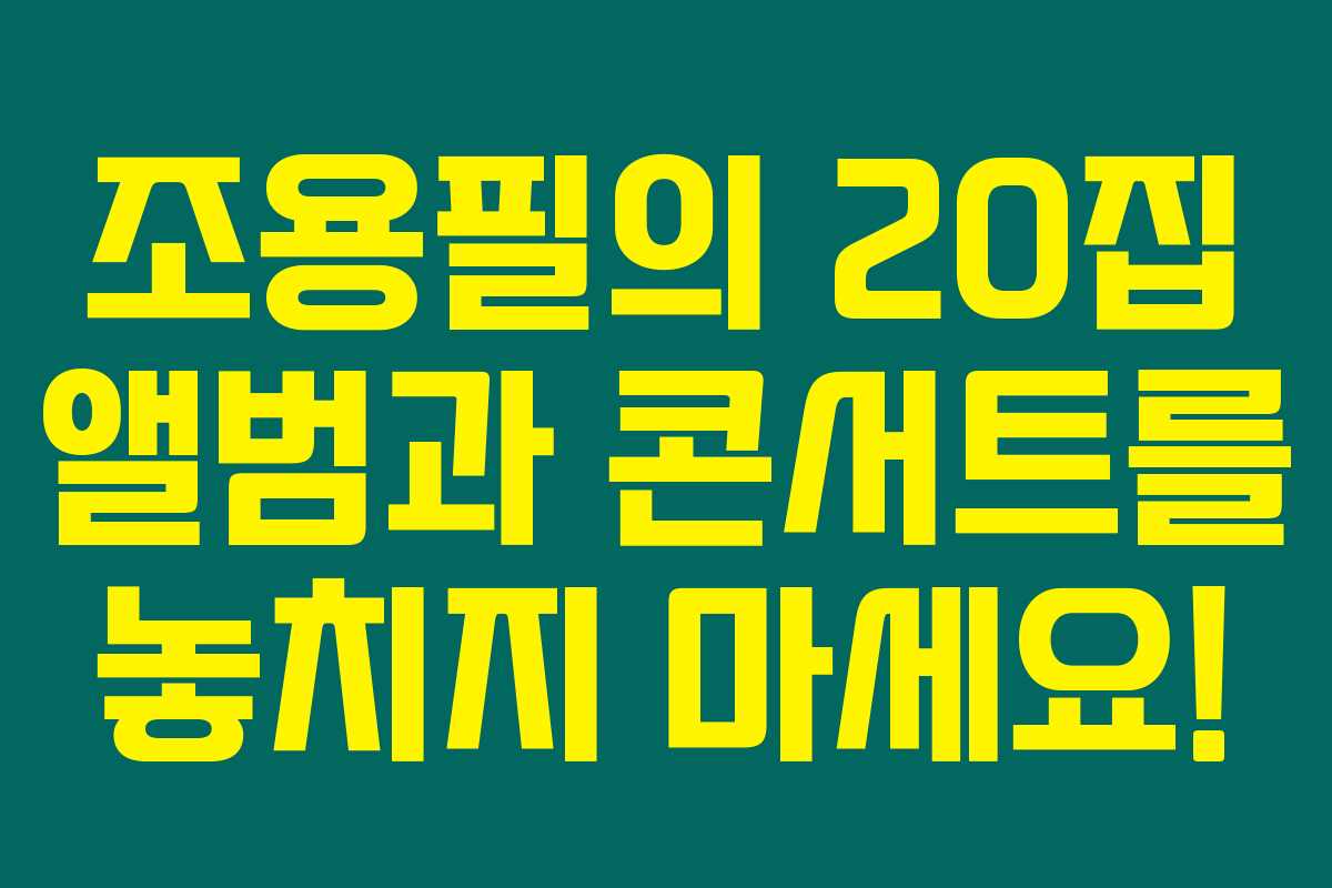 조용필의 음악 여정과 그의 20집 앨범이 선사할 특별한 순간들을 기대해보세요. 여러분도 음악과 함께 조용필의 감동적인 순간을 만끽해 보시길 바랍니다. 이제 음악의 거장과 잊지 못할 시간을 즐길 수 있는 좋은 기회와 함께하세요!