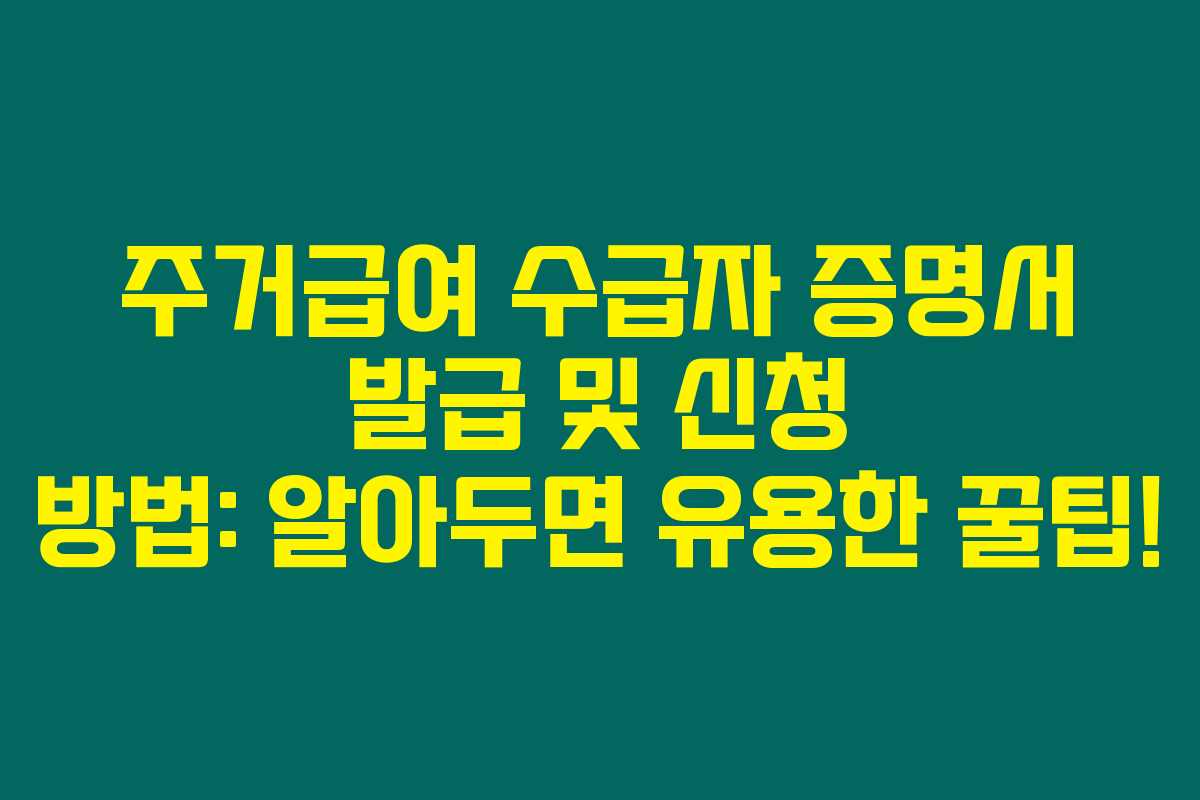 제가 직접 확인해본 결과, 주거급여 수급자로 신청하는 것은 소득이 낮은 가구에게 주거비를 지원받을 수 있는 정말 중요한 방법이에요. 아래를 읽어보시면 주거급여 수급자 증명서 발급과 신청 방법에 대해 자세히 설명드리겠습니다. 이 글에서는 증명서 발급 절차, 신청 조건, 필요한 서류, 그리고 주의사항 등을 종합적으로 정리해보았어요.