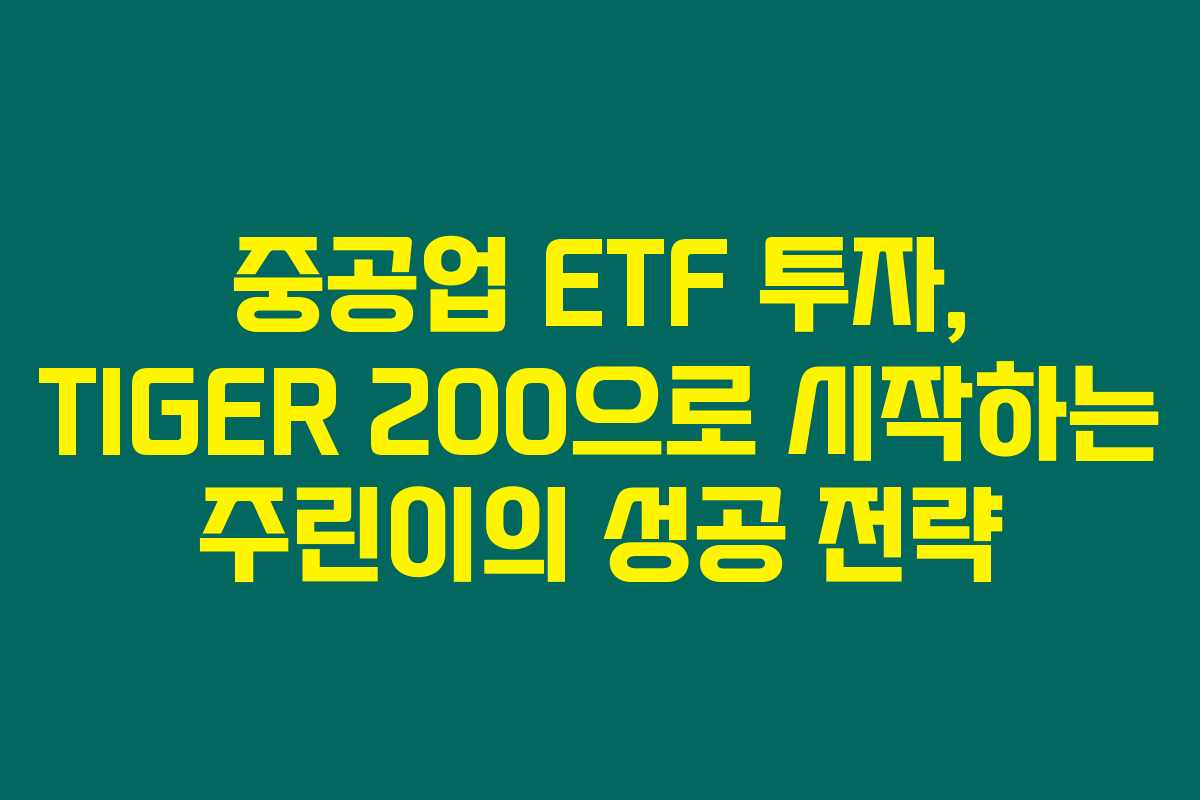 주린이 여러분 중공업 ETF를 고려하고 있다면 절대 놓쳐선 안 될 기회입니다. 특히 TIGER 200 중공업 ETF는 코스피 200을 포함하는 대형 중장비와 조선주에 투자할 수 있는 매력적인 상품이에요. 정말 이 투자상품이 주린이에게 적합한 선택인지 궁금하지 않나요? 아마 많은 분들이 이 ETF의 실체와 투자 방법에 대해서 잘 모르실 거예요. 아래를 읽어보시면 더 많은 정보와 통찰을 얻을 수 있을 거예요.