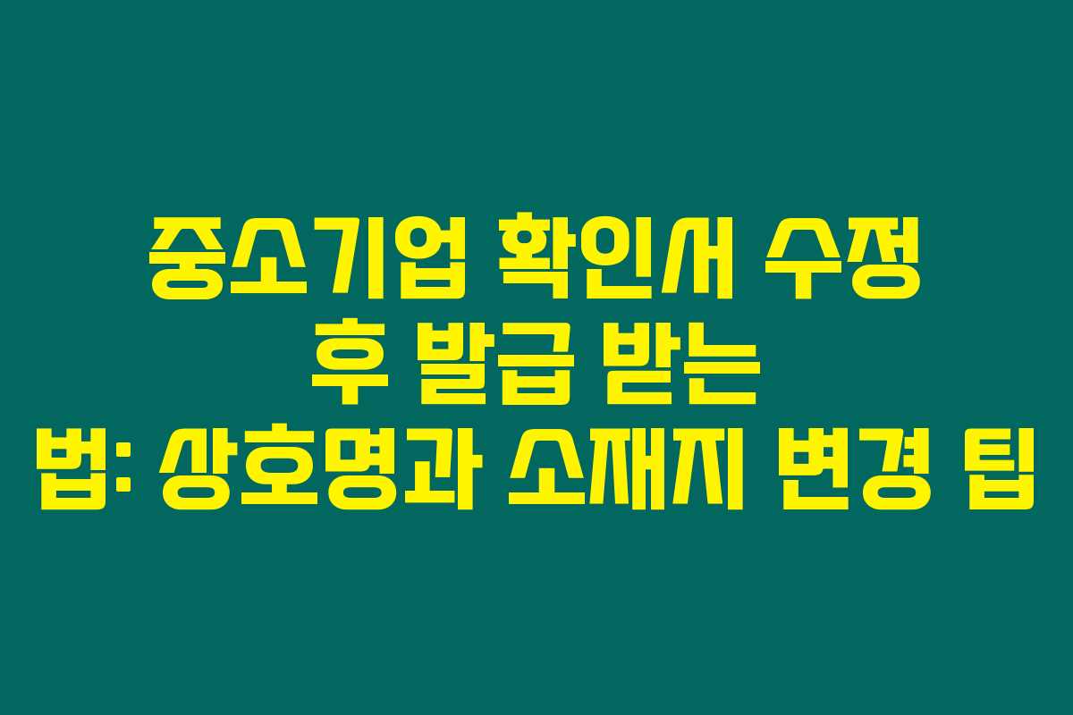 중소기업의 상호명이나 소재지가 바뀌면, 이전 상호명을 사용한 증명서가 더 이상 유효하지 않을 수 있죠. 그래서 제가 직접 알아본 바에 따르면, 이런 경우에는 반드시 수정된 중소기업 확인서가 필요하다는 점을 기억해 주세요.