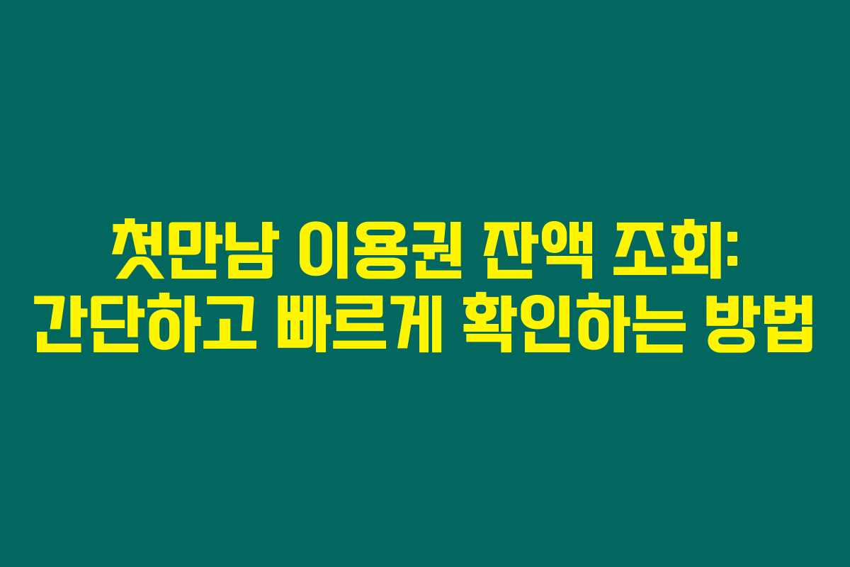 디스크립션은 텍스트로만 구성해줘. 첫만남 이용권 잔액 조회에 대해 상세히 알려드립니다. 제가 직접 경험해본 결과로는, 쉽게 확인할 수 있는 방법과 중요한 정보가 많이 있습니다. 아래를 읽어보시면 잔액 조회를 간편하게 하는 법과 유용한 팁을 알 수 있습니다.