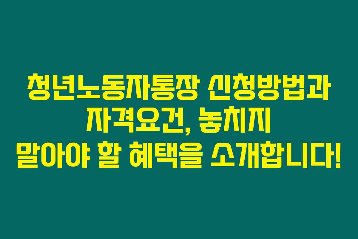청년노동자통장은 젊은 청년들이 미래를 위해 됴저축을 할 수 있도록 돕는 정부 지원 프로그램입니다. 매달 일정 금액을 저축하면 정부에서 추가 지원금을 받을 수 있거든요. 자세한 내용 읽어보세요!