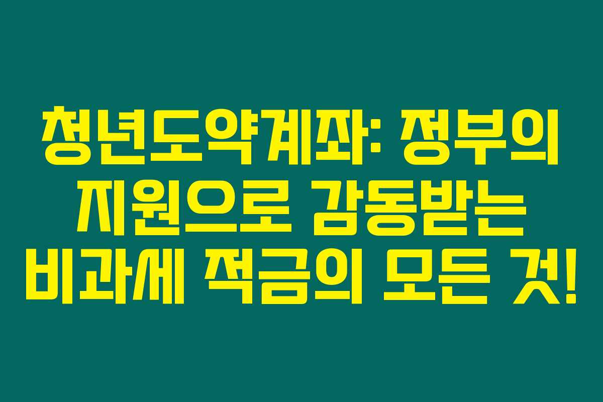 제가 알아본 바로는 청년도약계좌는 특히 청년들이 중장기 자산을 형성하는 데 큰 도움이 되는 상품이에요. 이 계좌는 정부의 적극적인 지원을 받으며 비과세 혜택까지 추가되어 정말 매력적으로 느껴졌습니다. 아래를 읽어보시면 청년도약계좌의 신청 조건, 금리, 그리고 혜택에 대해 자세히 이해할 수 있을 것입니다.
