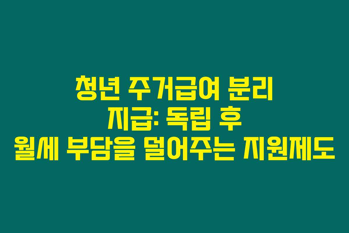 청년 주거급여 분리 지급 제도는, 학업이나 취업, 구직 등으로 독립하여 부모와 따로 거주하는 미혼 청년에게 월세를 지원하는 제도입니다. 통계에 따르면, 독립적인 생활을 원하는 청년들이 많지만 재정적 부담으로 인해 어려움을 겪는 경우가 많습니다. 그래서 정부는 이들에게 경제적 지원을 통해 기본적인 주거 안정성을 제공하고 있습니다.